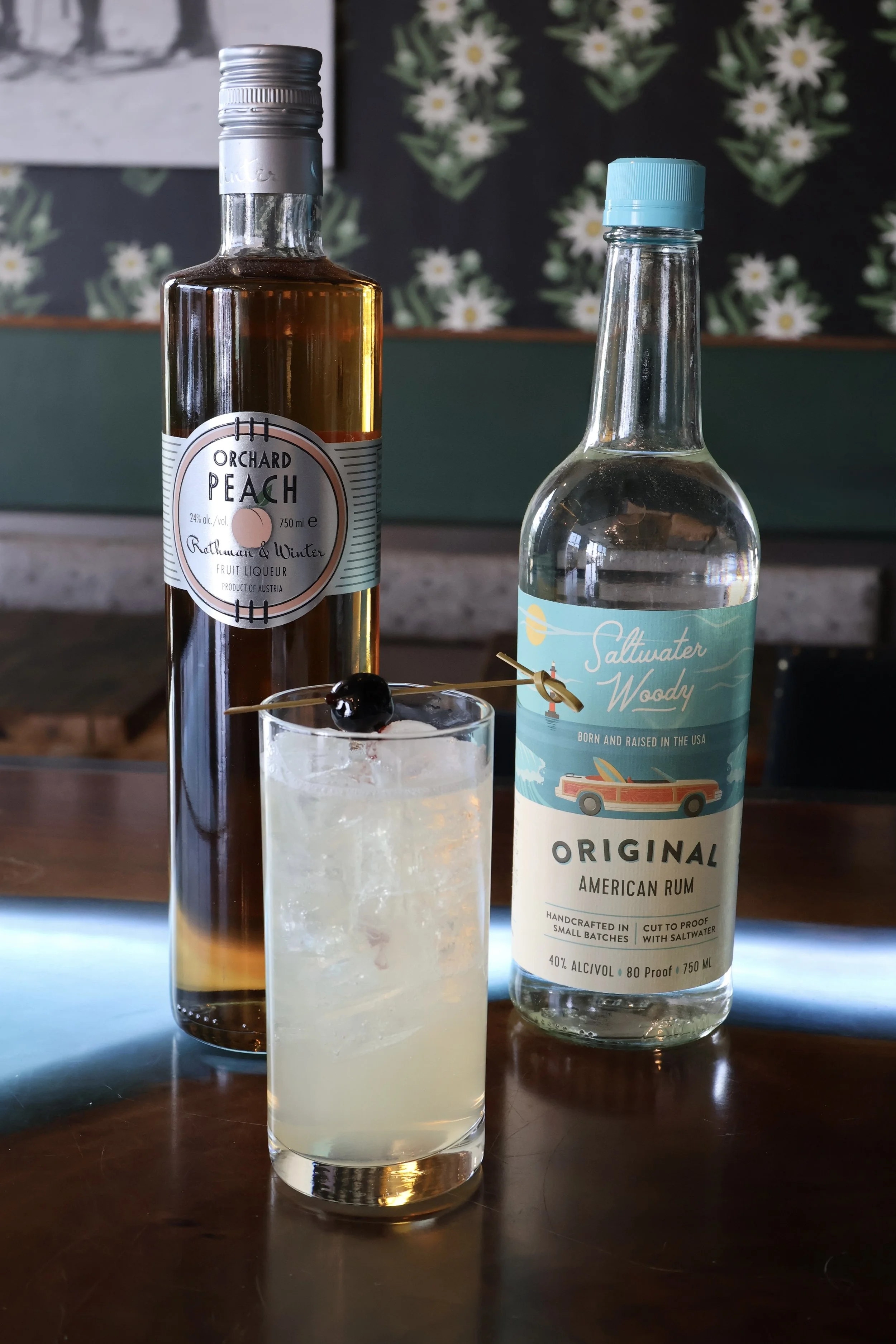 A refreshing cocktail for a warm week! Featuring Rothman & Winter Peach Schnapps, Saltwater Woody American Rum, Lime Juice and Simple Syrup