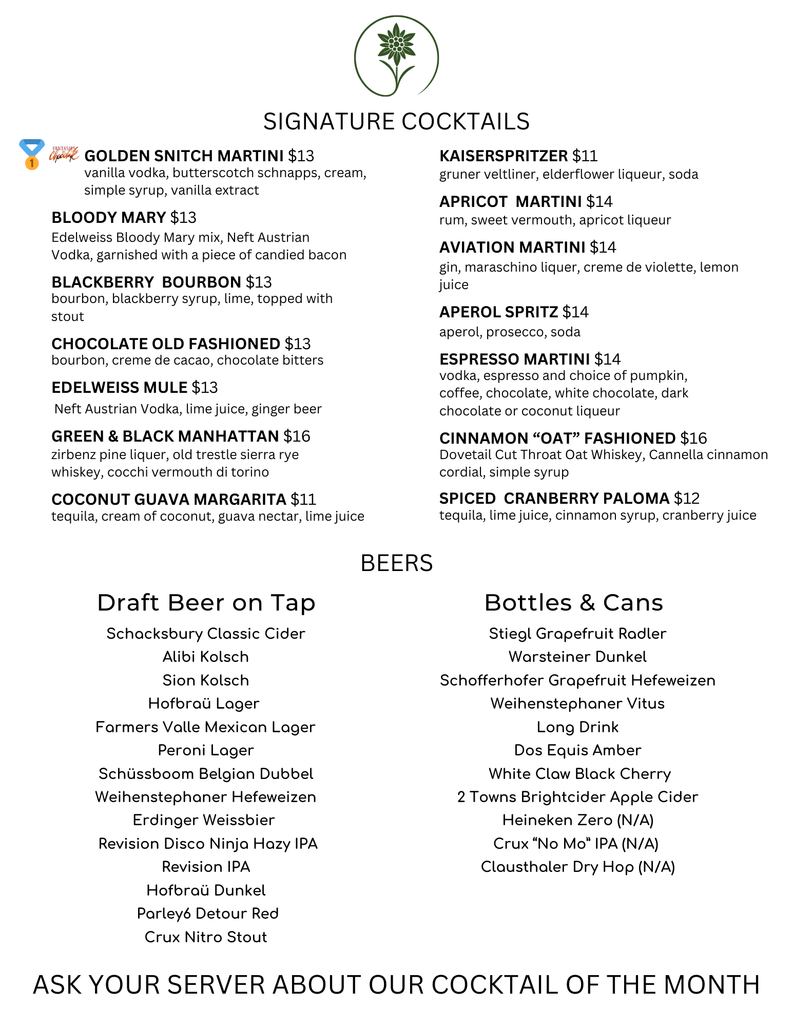 Classic Austrian Comfort Food, Thin-Crust Tyrolean Pizzas, Specialty Cocktails